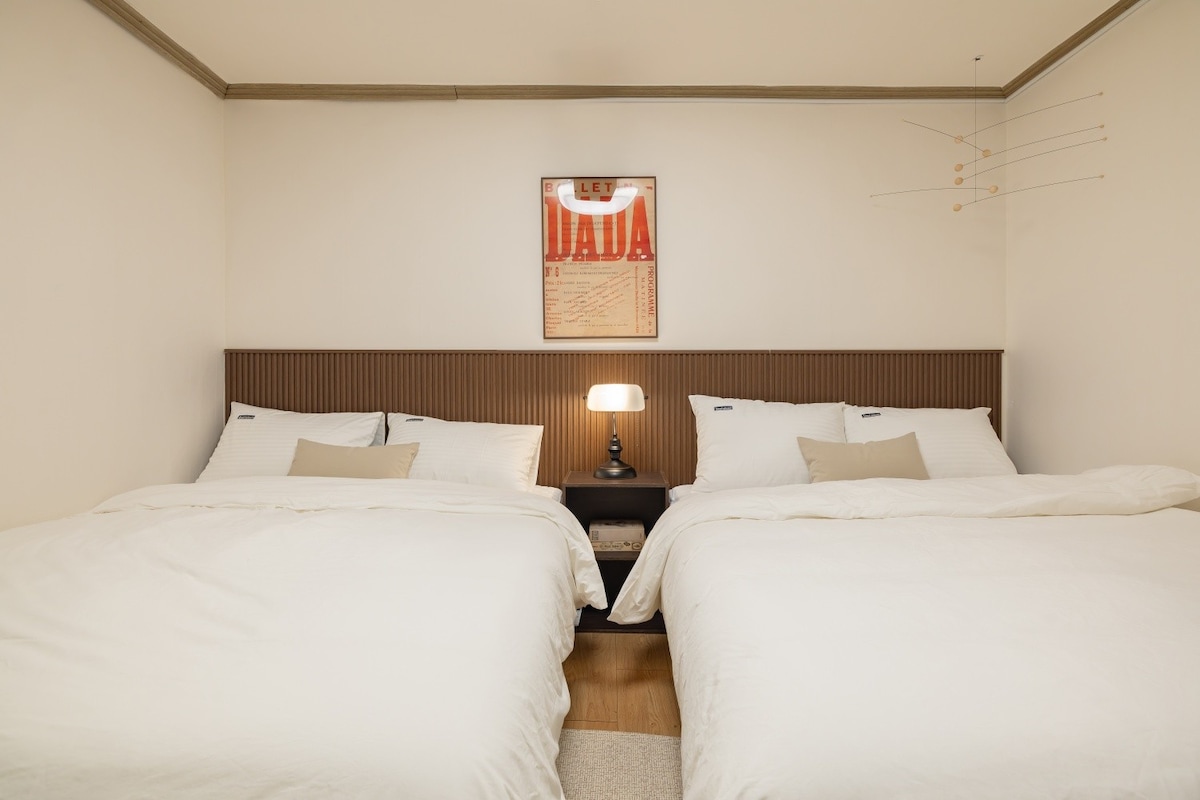 “서울의 활기와 감성을 한번에 담은 숙소” 건대입구역 1번 출구 도보4분 | 공항버스 도보 4분 | 방 2개 · 욕실 1개 | 최대 4인 투숙 가능 여행 중에도 ‘내 집 같은 편안함’을 누릴 수 있는 곳입니다. 따뜻한 조명, 정갈한 침구, 아늑한 공간 혼자만의 여행에도, 가족이나 친구들과의 소중한 시간에도 완벽하게 어울리는 집이에요. 저희 숙소는 건대입구역 1번 출구 도보 4분, 공항버스 4분 거리에 있어 서울 어디든 편리하게 이동할 수 있습니다. 숙소 문을 나서면 바로 건대 맛의거리, 커먼그라운드, 성수·뚝섬 핫플이 펼쳐져 있어, 낮에는 트렌디한 카페와 쇼핑을, 밤에는 활기찬 분위기를 그대로 즐기실 수 있습니다. 🛏 객실 구성 방 1: 더블 침대 1 + 싱글 침대 1 방 2: 다이닝 공간(4인 테이블과 의자) + 접이식 쇼파베드 1 거실 및 주방 : 트렁크를 쉽게 운반할 수 있는 트인 공간 욕실 1개 모든 방 개별 에어컨 설치 최대 4인 투숙 가능