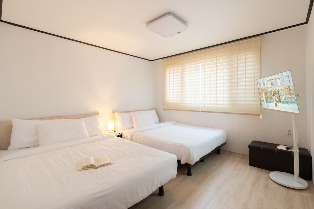 [3 间客房 + 2 间卫生间] 宽敞的客厅和卧室,距上水站 5 分钟,靠近弘大和汉江