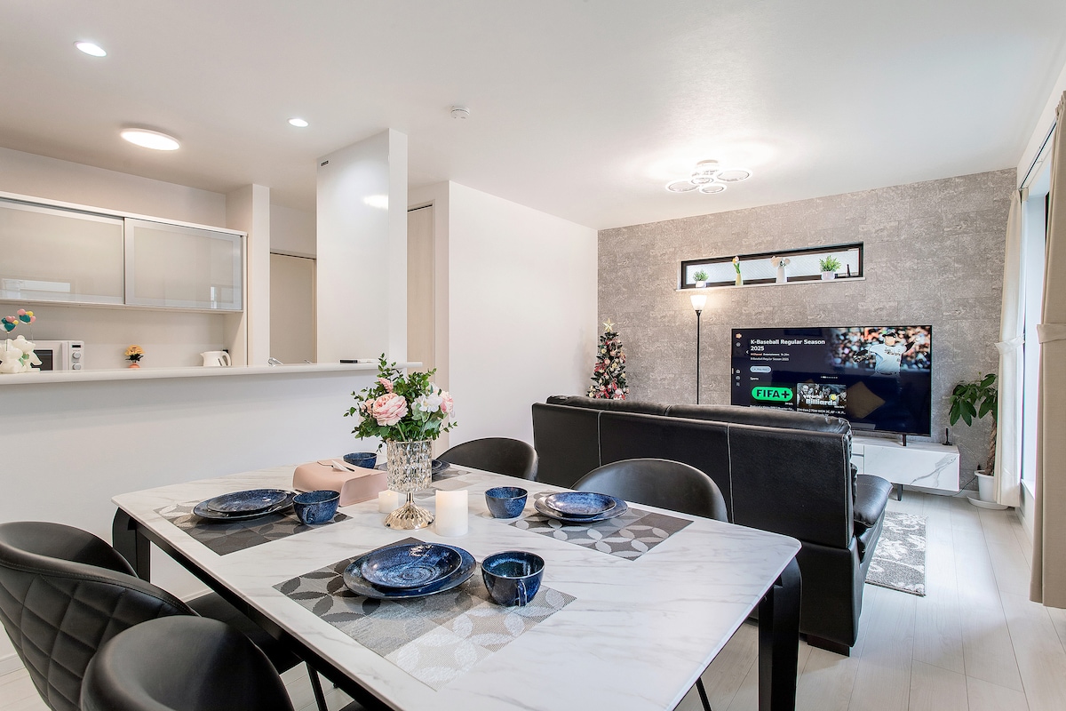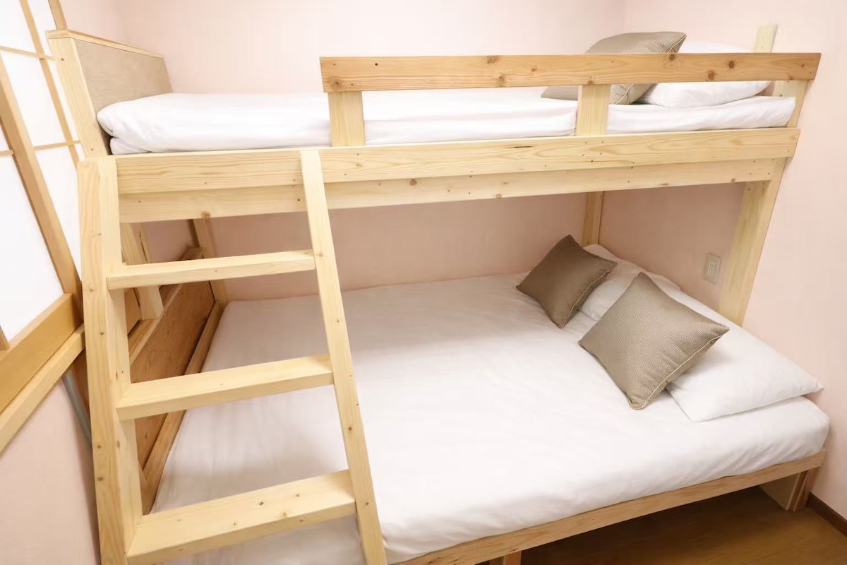 本民宿为一栋于2024年3月全新落成的三层日式别墅,经日本政府认证的合法民宿,整体空间超过100㎡,装修高档,宽敞明亮,温馨整洁,专为追求舒适旅居体验的您而打造。 🏠 房源配置一览: 🛏 3间大卧室:每间都拥有充足空间,安静私密,如家般温馨 🛋 2个厅:含约30㎡的大客厅,适合家庭聚会或朋友休憩 🍽 开放式厨房:厨具齐全,适合亲手下厨 🛁 配备空调与免费高速 Wi-Fi,全屋舒适便捷 适合情侣蜜月旅行、家庭亲子游、商务差旅等多种出行场景。 整栋建筑完全独享,保证您的隐私和安宁,让您真正放松身心,享受属于自己的大阪时光。 🚉 交通信息优越,直达各大景点: 地铁四桥线 玉出站:步行2分钟  → 约7分钟(4站)直达难波(道顿堀)  → 约9分钟(5站)直达心斋桥  → 约15分钟(7站)直达梅田 南海电铁 粉浜站:步行9分钟  → 约14分钟(4站)直达难波站  → 约49分钟(10站)直达关西机场(无需换乘) 无论是购物、美食、观光,或是短期居住与出差,陽明宿 粉浜都能为您提供便捷的出行与家的温暖。
