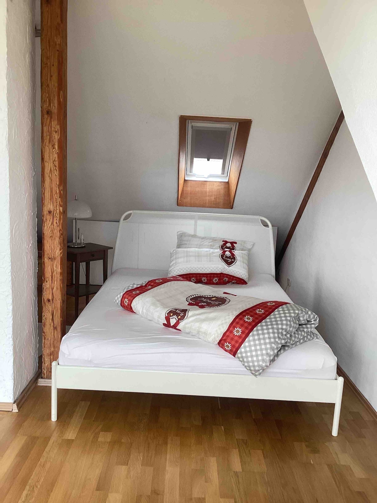A lovely, newly renovated roof studio equipped with air conditioning. Located in the centre of Konstanz near „Seerhein“ the roof studio can be easily reached by all means of transportation. There are cafes, shopping facilities and a bakery nearby. The studio is perfectly designed for all people who want to feel at ease in the middle of the town. The bathroom is small but practically arranged. There is a kitchenette with a fridge, a stove and a dishwasher.