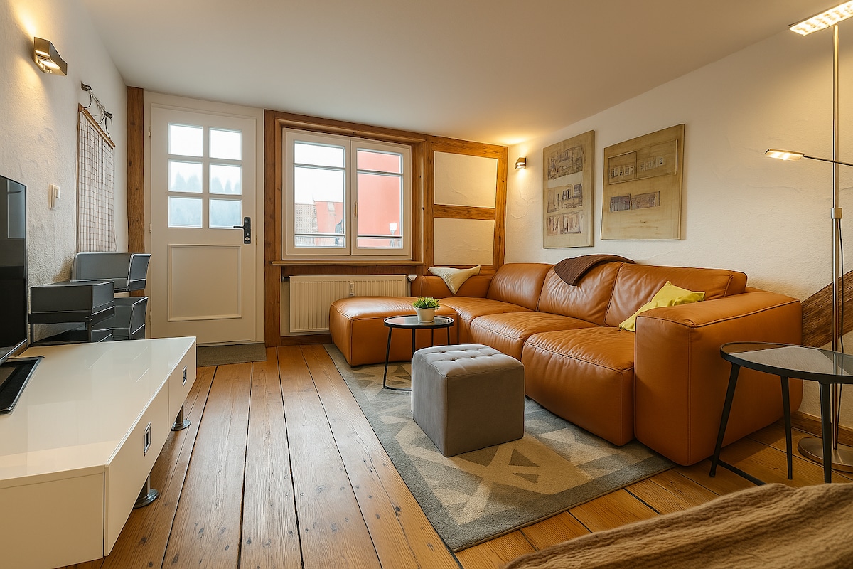 Our Coziest Hideaway: A true snuggle nest – perfect for solo travelers or couples who love being close! Fully equipped with everything you need for a comfortable stay. Ideally located in the heart of the city, and yes – it comes with a balcony! Bicycles are stored safely and dry in a locked, covered courtyard. The BODENSEE-CARD is included with the tourist tax, giving you unlimited access to all public transportation. Living space: 19 sqm (+ balcony)