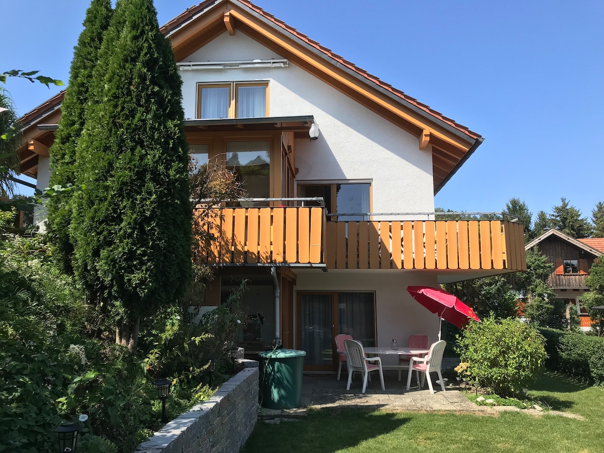 Enjoy this comfortable and very large holiday apartment, which is very child-friendly with beautiful garden, toys for inside and outside and a lot of children's books. The area is very quiet and offers hikes starting straight from the house. A big and sunny balcony with a nice view offers eating and drinking outside
