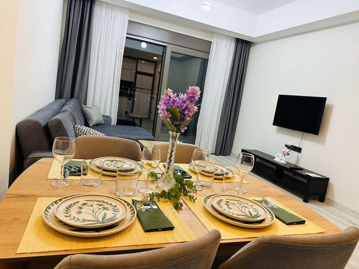 It is a stylish and peaceful family facility for everyone who wants to have a boutique and luxurious holiday. It is very close to Side Antique City, 700 meters from the sea, 7.5 km from Manavgat Waterfall and 65 km from Antalya Airport. There is a fully equipped kitchen (all the necessary items including a stove), Wi-Fi, TV, refrigerator, dishwasher, washing machine, vacuum cleaner, high chair and baby crib, iron, hair dryer and tea and coffee maker. All the items in the apartments are brand new