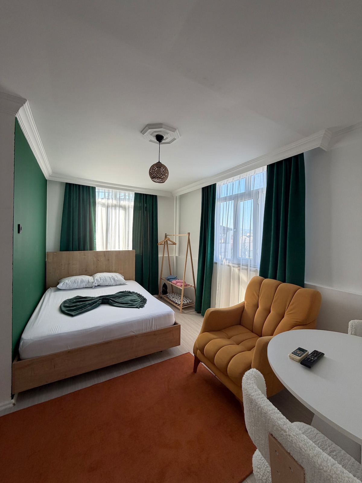 Şehir merkezinin kalbinde, aileler için ideal bir konaklama sunan bu stüdyo daire, modern tasarımıyla öne çıkıyor. Geniş balkonu, doğalgazlı ısınma sistemi ve tam donanımlı mutfağı (tencere, tava, tabak, çatal dahil) ile rahat bir ev atmosferi sağlıyor. 7/24 resepsiyon hizmetimiz ve apartman dışındaki güvenlik kameraları, güvenli ve sorunsuz bir konaklama deneyimi sunuyor. Şehir merkezinde ailenizle rahatça vakit geçirebileceğiniz mükemmel bir seçim!