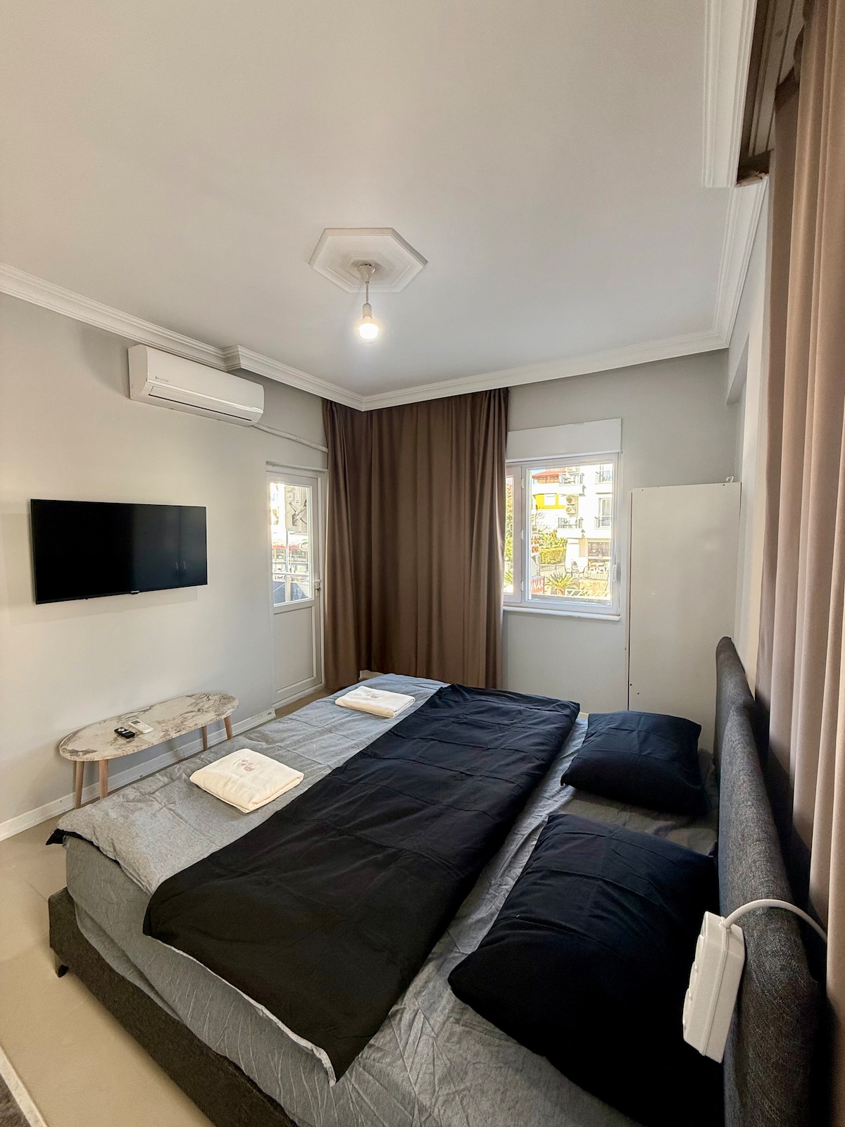 Solmare Suites’e hoş geldiniz! Antalya’nın gözde bölgesi Konyaaltı’nda yer alan bu yepyeni ve modern 1+1 suit dairemiz, hem konforu hem de sade şıklığıyla size evinizde gibi hissettirecek. Denize yalnızca birkaç dakikalık yürüme mesafesindesiniz. İster Antalya’yı keşfetmek, ister sahilde keyif yapmak isteyin — Solmare Suites size huzurlu bir mola sunar.