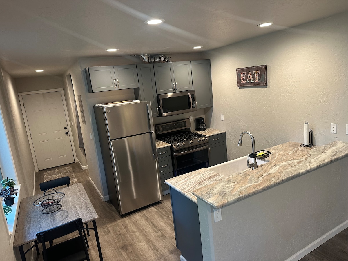 La Casita Centro: Brand new 1 bedroom, 1 bath private guest home complete with a plush King bed, and full kitchen with stainless appliances. This quaint sun-washed casita is ideally located just a few blocks to downtown Coeur d’Alene where you will find fabulous local shopping, craft beer, music, beaches, parks, walking paths/hiking trails, and restaurants. And while you’re here romanticize the small moments there is endless inspiration all around us—take it in and enjoy your stay!
