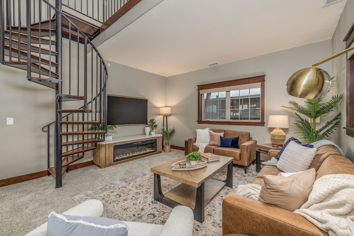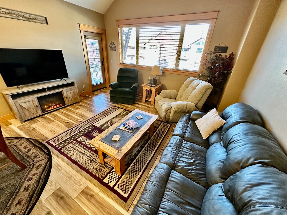 Discover Coeur d'Alene from this stylish 2-bed, 2-bath condo in Riverstone Village! Perfect for 4 guests and extra beds for up to 6. It features vaulted ceilings, fully equipped kitchen, and a cozy fireplace. Enjoy waterfront dining, lake access, and vibrant entertainment just steps away. Ideal for vacationers or corporate travelers, this retreat offers the best of city life and outdoor adventure. Includes secure garage parking. License#57199.