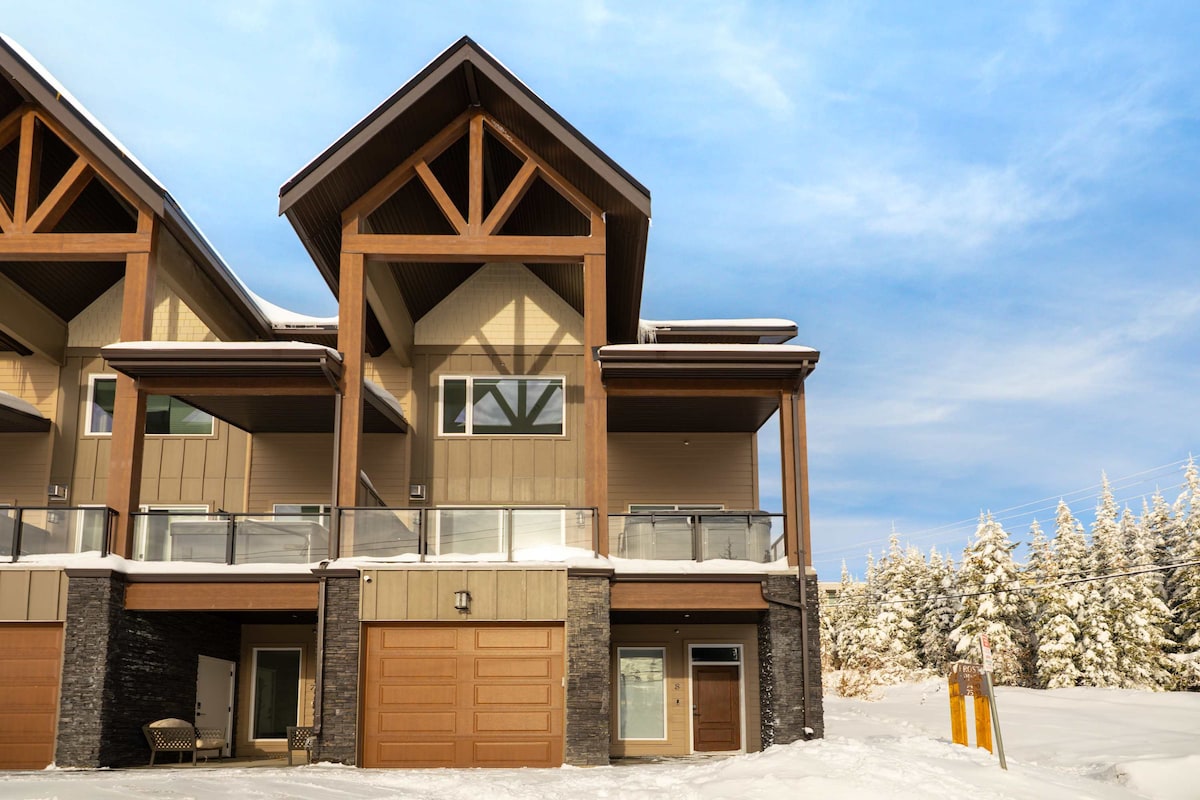 Beautiful, clean & bright w/ ample natural light, sleeps 8 people, perfect for 2 families with children. Short ski down to the Snow Ghost & Ridge Rockets chairlifts. Family-oriented building for a quiet, peaceful stay. 2 parking spots directly outside, a private hot tub with mountain views, a BBQ, Xbox 360 with a game library, a DVD player with a large movie selection, Roku for Netflix, Disney+, Prime, board & card games, Telus cable tv & WiFi + a Sonos audio system.