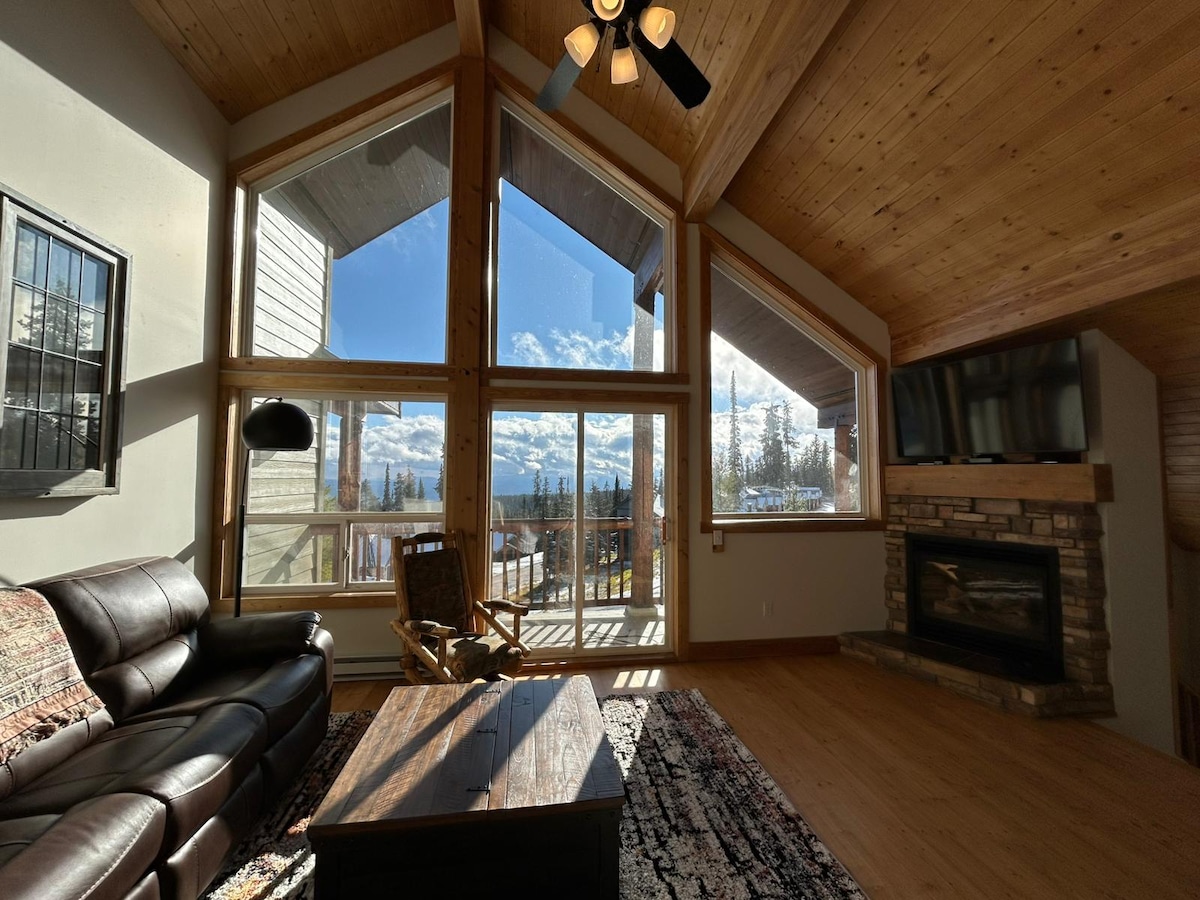 Welcome to the Roaming Bears Lodge in Snowpines at Big White Ski Resort. Enjoy the gorgeous views of the Monashee Mountains from 25-foot floor-to-ceiling windows, or from the deck and 7-person hot-tub. After a long day on the slopes, cook a meal in the spacious kitchen, curl up on the comfy couch in front of a fire, or enjoy some games, before taking a dip in the private hot tub. Family and pet friendly.