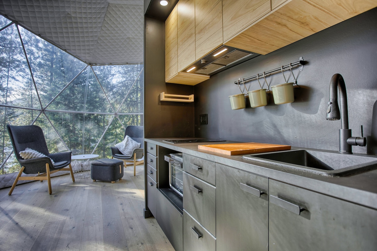 河畔私人圆顶屋,距离滑雪山仅几分钟路程