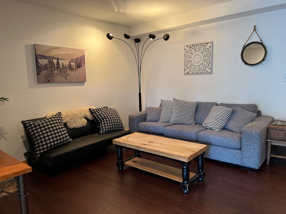 Kick off your shoes and take in the serene view at our cozy hilltop suite. Enjoy a kitchen stocked with every comfort you expect, plus specialty coffee equipment you’ll love. Wind your way across the road and down the trail to our private sandy beach, and roast some marshmallows on the campfire while you’re there. Novelty and adventure are nearby: only 3 minutes to Nelson, 28 minutes to Whitewater Ski Hill, and 1 minute to Lyons Bluff hiking trail.