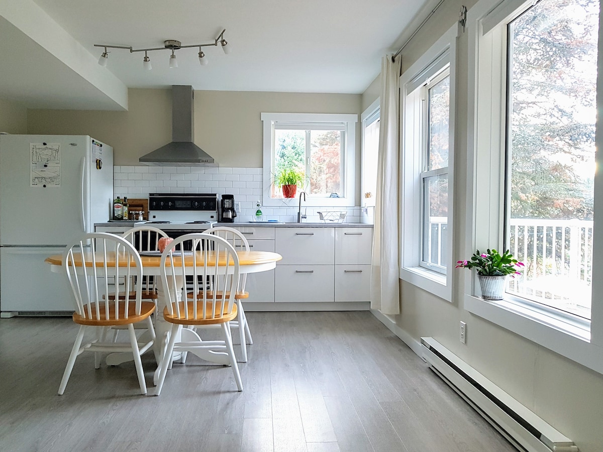 The amazing longer stay discounts (⭐up to 50%⭐) make this bright clean suite, which includes a full kitchen and a clothes washer/dryer, so comfortable for longer stays. Being so new, clean and roomy, it is ready to be settled in for a great stay. It boasts of an amazing new king bed for a restful sleep, gorgeous spa bathroom, fully appointed kitchen and comfy sitting area. The big windows overlook the private deck and mountains. It is within city limits, yet quiet. The perfect spot!