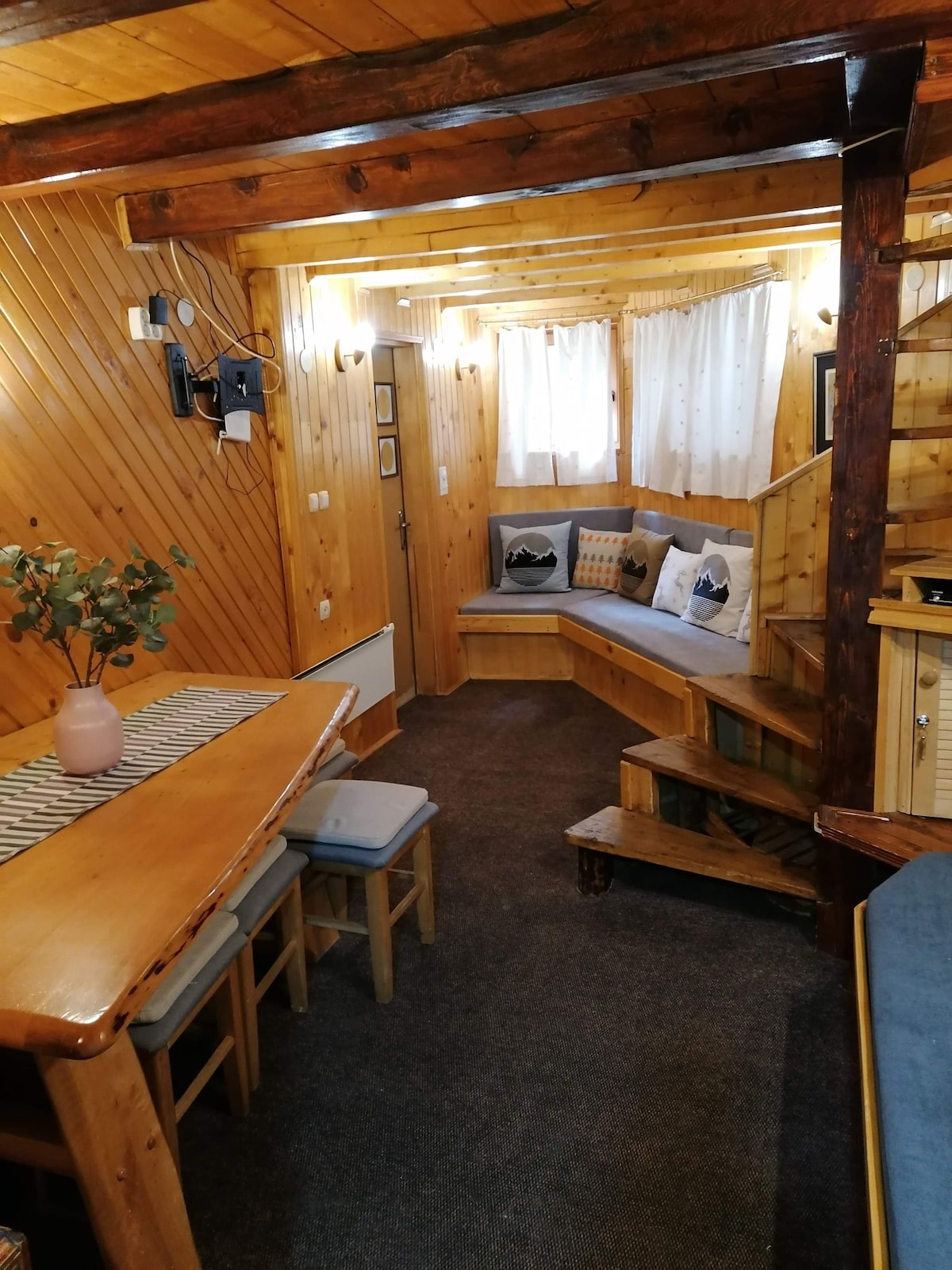 Sun facing,at1500m elevation,brand new apartment,decorated in lovely mountain style with astonishing mountain view.Only 2km from closest skiing lane,in quiet neighborhood with wonderful mountain view & evergreen forest around. Fully pawed road with public lights connecting it to main road. Grocery shops, hotels and restaurants are in close walking distance. No stairs and no uphill/downhill walking is required to reach your warm and comfy apartment from private parking just in front of the house.