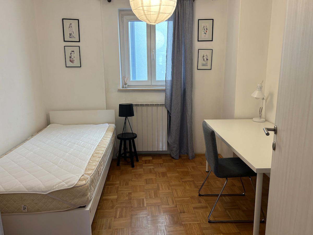 • New smaller Cozy Flet “studio” in the Center of Portoroz, less then 200m from Central sand beach and one minute walk from main Bus station, super market and local bars and restaurants. The flat is in the building in the first floor on the right. This year with a new comfy bed.Private toilet is seperate from the room but only 2 meters down the hall. In front of the building is a free parking space for guests. FREE bicycles! (NEW AIRCONDITOING) Only Extra charge is TouristTAX 2.50€ for a per