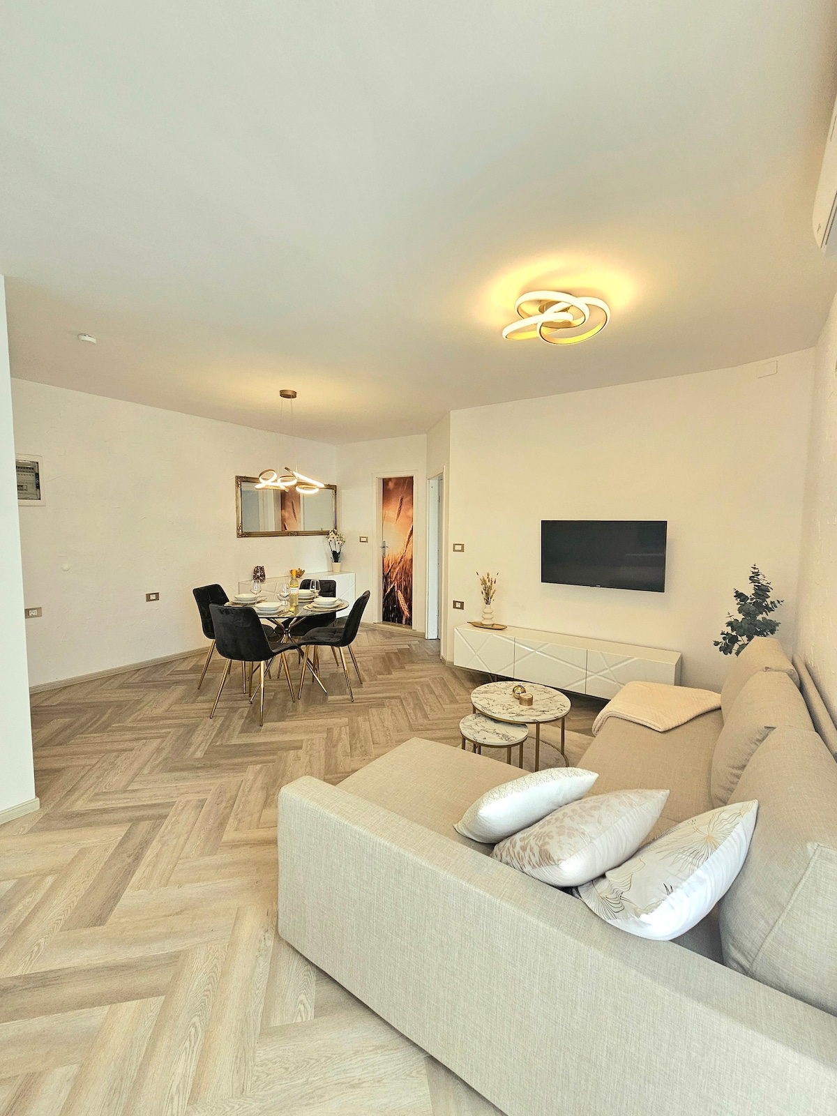 Majestic and modern apartment at the foot of the S. Giusto Castle. Bright apartment with its very high ceilings and generous size (119m2) with spacious entrance, open space living room with high-level kitchen, 2 spacious Suites, 2 full bathrooms (1 with hot tube and 1 with fantastic deluxe shower cubicle), yoga/stretch area. Arty details. Located in a strategic area walkable to Piazza Unità, and main attractions. Bakery, Shop, Bus and Taxi in front of building. Free street parking.