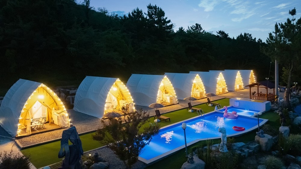 모던하고 편안한 인테리어의 오션뷰 숙소 오션 POOL 글램핑 A