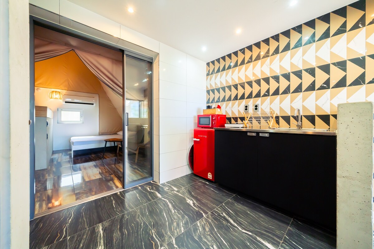 모던하고 편안한 인테리어의 오션뷰 숙소 프라임 오션텐트 A 캠핑물품 지참