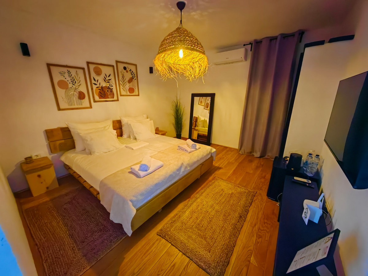 Ovaj elegantni smještaj savršeno će se uklopiti u vaše putovanje. Naša novouređena dvokrevetna soba s 4 zvjezdice i privatnom kupaonom pružiti će svim posjetiteljima nacionalnog parka Plitvička Jezera udoban i nezaboravan odmor. Sve naše sobe opremljene su klima uređajem, sefom, mini hladnjakom, smart TV, internetom i ostalim sadržajima potrebnim za udoban i komforan odmor. Gostima je na raspolaganju i upotreba vanjskog bazena.
