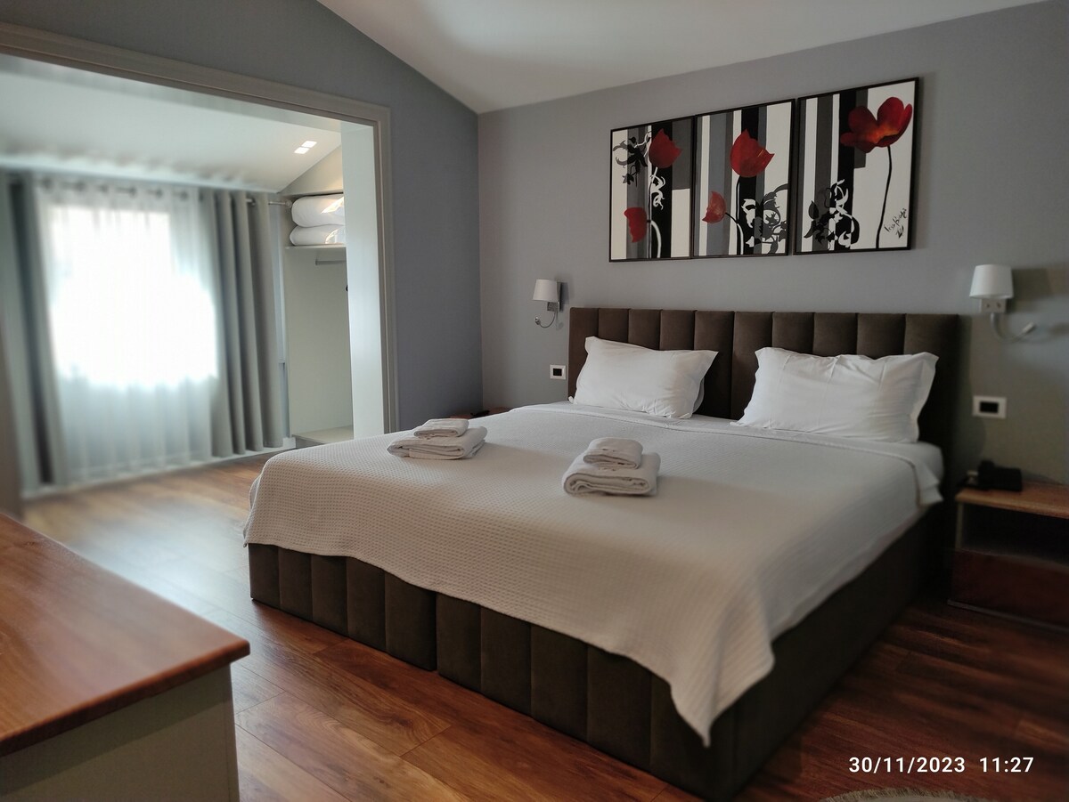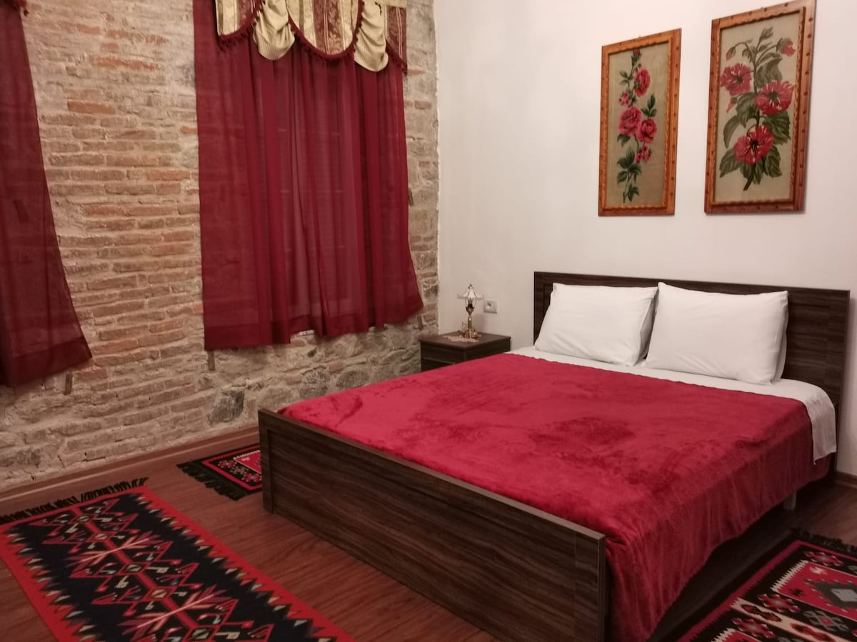 Scopri la semplicità della tradizione soggiornando in questa camera piena di charme, dotata di due finestre luminose esposte sul giardino offrendo privacy e tranquillità. E' dotata di tutti i comfort e bagno privato. La stanza fa parte di una villa tipica di Korca costruita più di 100 anni fa con una notevole storia alle sue spalle. soggiornando presso Domus potrete rilassarvi nel nostro giardino o terrazzo godendovi una bevanda presso il nostro piccolo bar all'interno della nostra struttura!