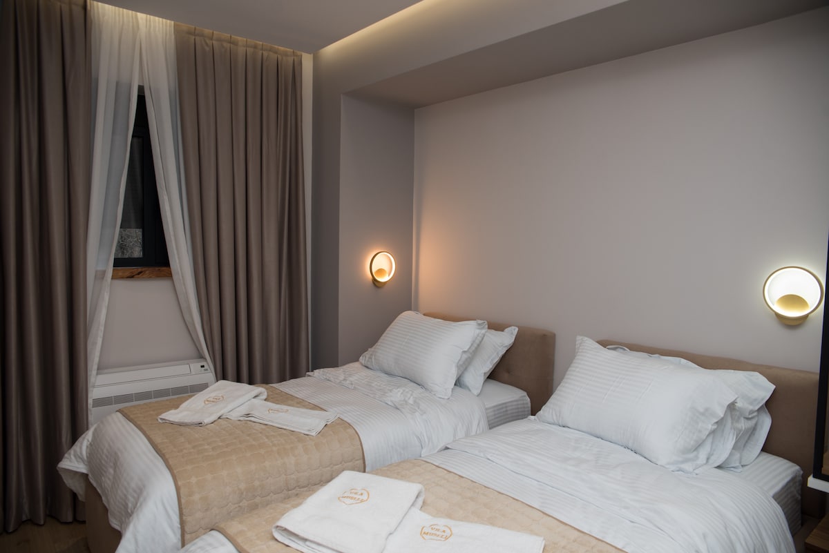 New Hotel newly furnished in the city center of Permet a beautiful city with great landscapes. A mountain facing from the west side and a gorgeous river from the east , 150 meters from the hotel where bathing, canoeing and fishing are popular activities among the locals and tourists. The room has a private bathroom, Wi-Fi, TV, air conditioning.