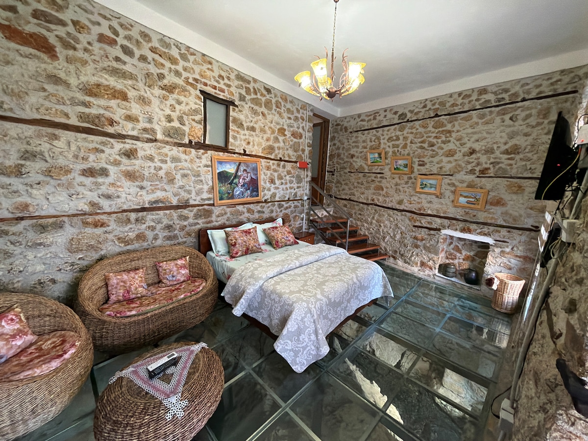 It's a stone house built in 1890, and now turned into a unique little guest house with a wood burner and a private terrace. It has a beautiful mountain view. The tranquility prevails everything. The main position of the house is East - South so it is sunny all the day.