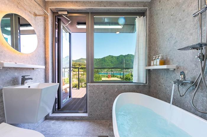 ์์ฐ ์ ์๋ฆ๋ค์ด ๊ณณ์ ์๋ฆฌํ, ๋ณธ์ธ๋ง์ ์ปจํ ์ด๋ ํ์ฐ์ค๋ฅผ ์๊ฐํฉ๋๋ค. ์ฐฝ๋ฐ์ผ๋ก ํผ์ณ์ง ์ฐ ๊ณผ ํธ์๋ฅผ ๋ฐ๋ผ๋ณด๋ฉฐ ๋ด์ฌ ๋๋ผ์์ ์ ๊ธธ ์๋ฐ์ ์์ต๋๋ค. ์ฌํ์ฉ๋ ์ปจํ ์ด๋๋ฅผ ์ด์ฉํ์ฌ ์ง์ ์นํ๊ฒฝ์ ์ธ ํ์ฐ์ค๋, ๋ชจ๋ํ๋ฉด์๋ ์ฐ์ ์ ์ธ ๊ฐ๊ฐ์ ์๋ํ๊ณ ๋ด๋ถ๋ ์๋ฆ๋ค์ด ์กฐ๋ช ๊ณผ ๊น๋ํ๊ณ ์ฌ๋ฏธ์๋ ์ธํ ๋ฆฌ์ด๋ก ๊พธ๋ฉฐ์ ธ ์์ด, ๋ฐ๋ปํ๊ณ ์ด๋์ ์ธ ๋ถ์๊ธฐ๋ฅผ ์์๋ ๋๋ค. ํน์ ํ 2์ธ์ฉ ์์ ์ด๋ถ์ด ์๋ ์นจ์ค์, ํ๋ฃจ ์ข ์ผ ์์ฐ ์์ ํํํ ํ ํธ์ํ ํด์์ ๋ณด์ฅํฉ๋๋ค. ์์ค์ ๋ชจ๋ํ๊ณ ๊น๋ํ๋ฉฐ, ์ค์์ค๊ณผ ํธ๋ฆฌํ ์์ค์ฉํ์ด ๊ตฌ๋น๋์ด ์์ต๋๋ค. ์๋ง๋น์๋ ๊ฐ์ธ์ฉ ๋ง๋น์ด ์์ด, ์์นจ์๋ ์ปคํผ ํ ์์ ์ฆ๊ธฐ๊ฑฐ๋, ์ ๋ ์๋ ์์ธ ํ ์์ ์ฆ๊ธฐ๋ฉด์ ์์์ ๊ฐ์ํ ์ ์์ต๋๋ค. ์ด๊ณณ์ ๋ก๋งจํฑํ ์ถ์ฅ์ด๋ ๊ฐ์กฑ๊ณผ ํจ๊ปํ๋ ์ฆ๊ฑฐ์ด ํด๊ฐ๋ฅผ ์ํ๋ ๋ถ๋ค๊ป ์์ฑ๋ง์ถค์ ๋๋ค. ํ์์ ์ธ ์์ฐํ๊ฒฝ๊ณผ ํธ์ํ ์์ค, ๊ทธ๋ฆฌ๊ณ ์ ํธ์ ์์น๋ก ์ธํด, ์ด๊ณณ์ ๋ ๋ ์ ์๊ฒ ๋ ๊ฒ์ ๋๋ค.