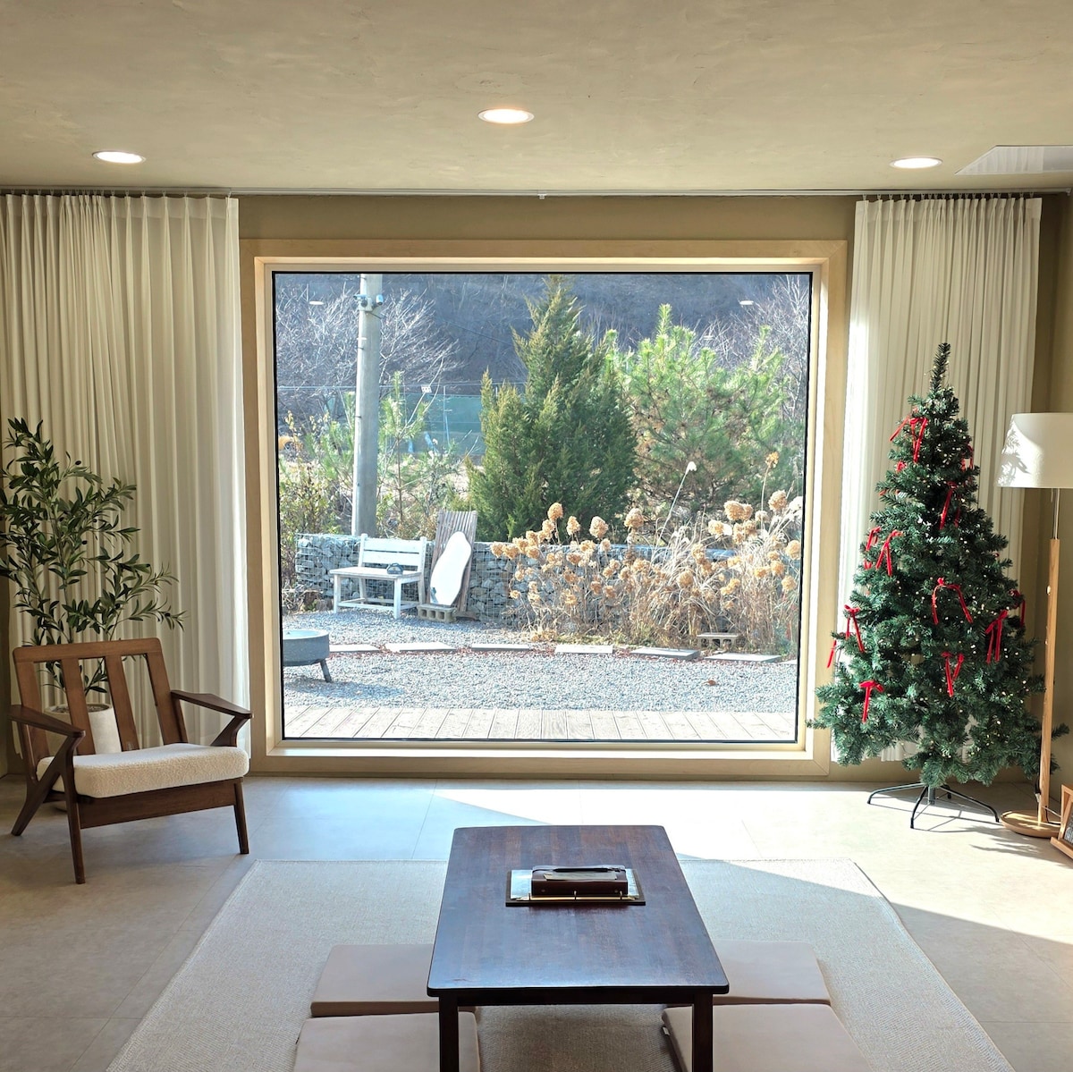 서울 근교의 평온한 전원주택 마을에 위치해 있는 300평대 독채입니다. 남향을 향해있어 아침햇살이 아주 따사롭게 비춰줍니다. 봄 벚꽃, 여름 계곡, 가을단풍, 겨울 설경, 사계절 최적의 숙소입니다 청결하고 미니멀한 숙소를 제공하고자 당분간은 게스트 최대 인원수를 3인으로 제한하고자 합니다. 2세 이하 영유아와 함께 방문시 최대 4인입니다. 게스트분은 독립적으로 2층집 주택의 1층전부와 정원을 전용으로 이용하 실 수 있습니다. 주인댁은 2층에 거주하시며 들어가는 입구가 분리되어 있어 프라이빗한 시간을 보내실 수 있습니다. 조용한 주택들이 모여있는 동네여서 평온한 휴식 시간을 즐기실 분들에게 잘 어울릴 만한 숙소입니다. [바베큐] 스탠딩 바베큐그릴 + 석쇠 준비 가능하며 추가비용은 1만5천원 입니다. [벽난로] * 벽난로는 기온이 영하로 내려가는 계절부터 피우기 시작합니다. * 벽난로는 화제위험과 실내로 연기가 퍼질수 있어 주인장이 직접피워드립니다~