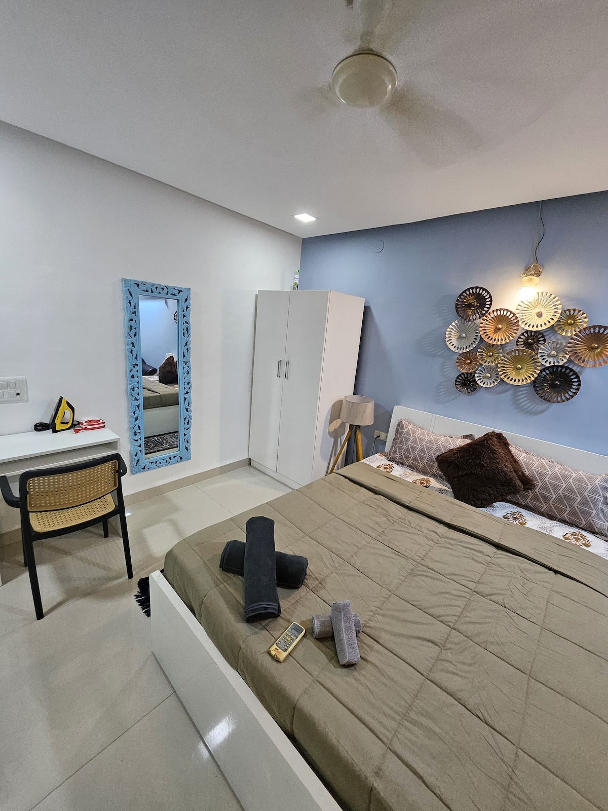Welcome to Pune Airport's Finest Lounge Studio, a thoughtfully designed studio apartment in Viman Nagar, just minutes from Pune Airport. Get a peaceful nap with a cozy king size bed, luxe interiors. Thoroughly cleaned and a peaceful space. Unwind with coffee breaks in the ambient lighting, and a peaceful vibe that makes every layover or stay feel effortless. Perfect for business travelers, couples, or anyone who loves a stylish pause before takeoff.