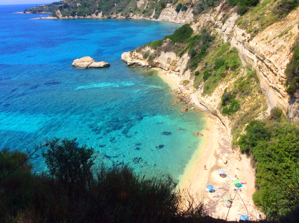 Just at the outskirts of the pretty hamlet of Svoronata, with views of Zante, the Ionian Sea and surrounding countryside, this charming, 50 sqm, 1st-floor residence, enjoys a tranquil location, very close to the airport, but quiet and perfect for a relaxing, romantic holiday for two or three.