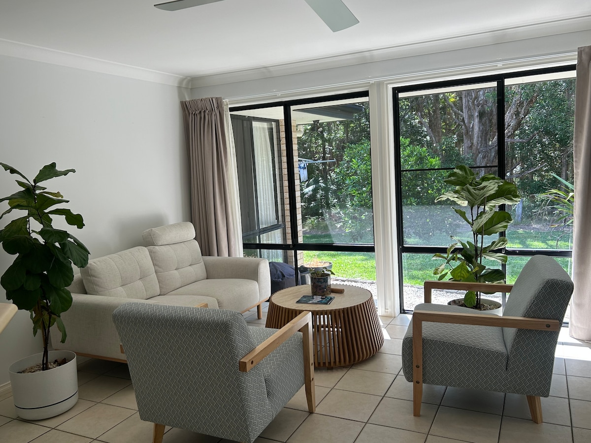 Tucked away in a tropical setting is this recently renovated modern Villa. Unwind with cold beer by the the outdoor pool or a candle lit soak and champagne in the indoor spa. A warm cosy ambiance will set the mood for your getaway and unwind, relax and enjoy this peaceful part of the Coffs coast. Just 2 minutes drive to the beach and 6 minutes to the main shopping centre in Coffs, Korora is the perfect location.