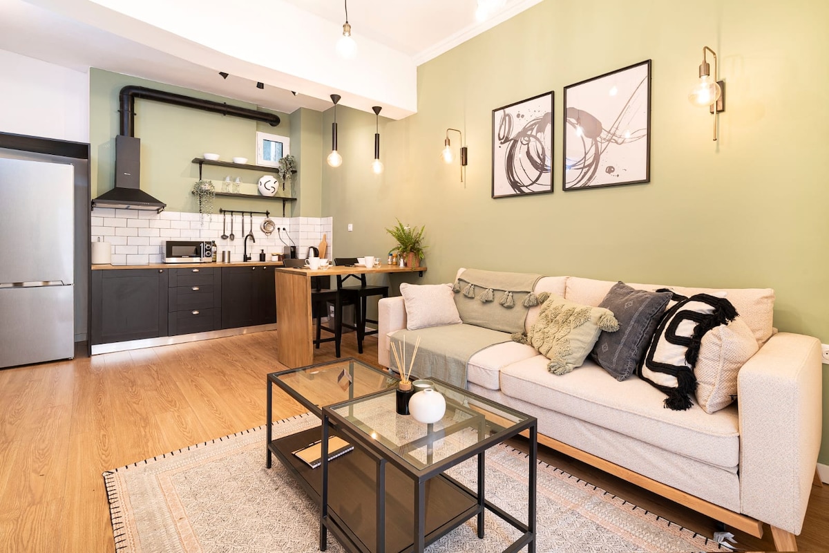 Make a light breakfast in a cozy kitchen with minimalist cabinetry and dine at a charming bistro table on the balcony. In the evening, kick back on a chic sofa and get lost in a book within a stylish, streamlined living room with hip graphic artworks. 3 min walk from SygkrouFix metro station, an 8-min walk from Acropolis Museum. — As the COVID — 19 has grown to pandemic level, we are working to ensure compliance with the latest guidance of hygiene and cleaning. We are taking additional steps for health and safety measures and disinfecting protocols in order to maintain the highest standards. This 40m2 spacious studio with a luxury minimalist design, fully renovated in March 2018, is ideal for couples, small group of friends or couples with a kid who want to enjoy unique holidays in Athens. The open floor plan consists of an entrance area, a fully equipped kitchen, sleeping area with Queen size bed (quality mattress and cotton linen) a comfortable sofa bed and a stylish bathroom with all the amenities you might need during your stay High speed wi-fi, Netflix and basic local channels. Air-conditioning (heat and cold), for the winter there is also central heating system and fireplace We will be at your disposal 24/7 providing you with all the necessary information in order to have a pleasant stay in our sophisticated apartment. Flexible check- in since we provide you the option of self-check- in during night time. - Long stays are possible ask about the rates for a month or longe Set in the historic Koukaki district, the apartment is just an 8-minute walk from the Acropolis museum and a stone’s throw away from some of the city’s most popular historic sites and museums. A vibrant urban wonderland is at your doorstep, with restaurants, bakeries, cafes, and cocktail bars nearby. For reservations more than 10 days we provide one extra cleaning and linen change during the stay for free.