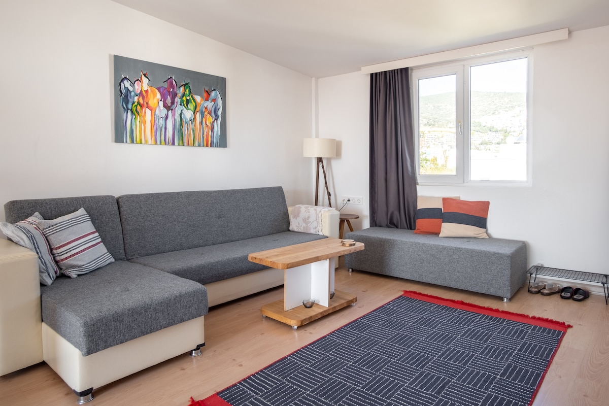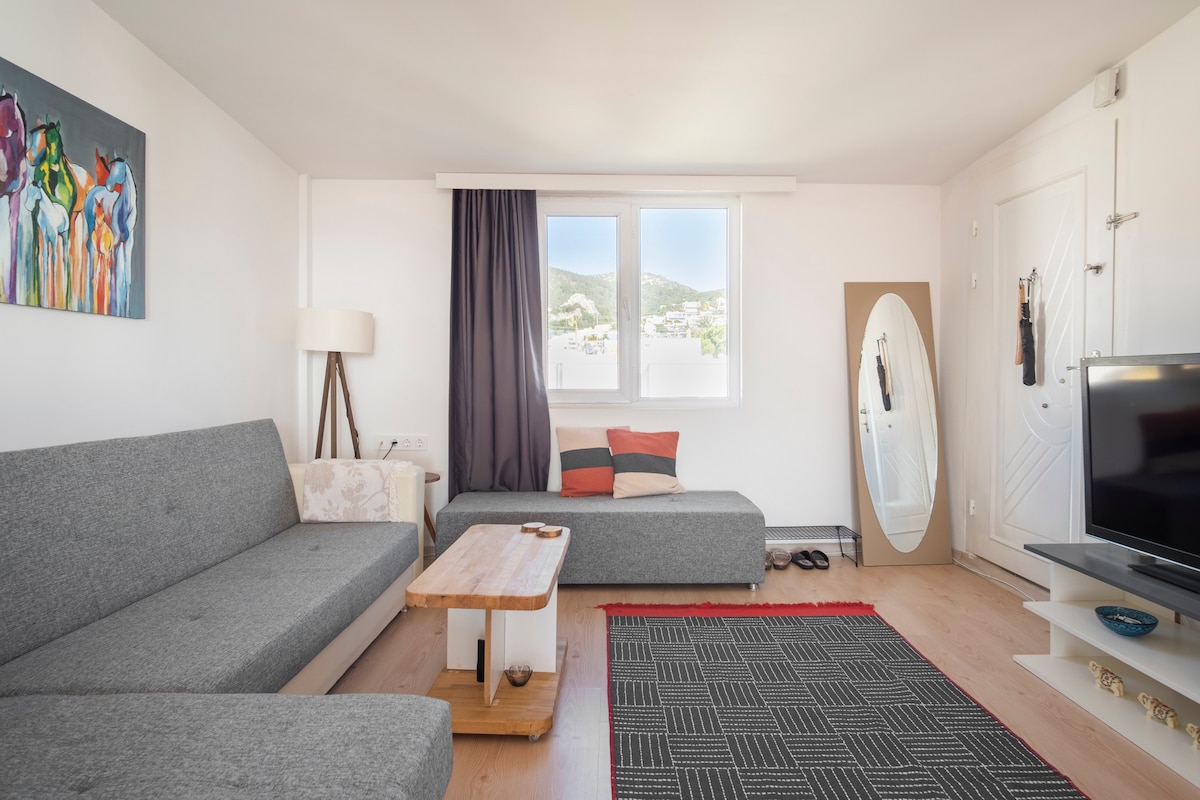 🌿 Welcome to the Peaceful City Oasis in the Heart of Bodrum! Feel the tranquility in this bright and spacious home located in the center of Bodrum, just a short walk from the beach and all major attractions. ☀️ Enjoy large sunlit windows, a cozy living room, a sea-view balcony, and a fully equipped kitchen. Rest in the queen-size bedroom and experience Bodrum’s warm, friendly neighborhood vibe. 🌺 We’ll take good care of you.😇