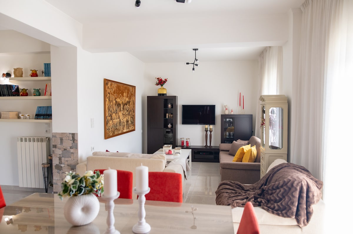 Place of wonderful aesthetic in Kantouni, fully furnished and equiped. Guests have access to the tree garden with fruit to collect. The can also enjoy relaxing moments at the beautiful yard of the house. The house is located very close to Kantouni beach (3 minutes on foot), popular bars, restaurants and a supermarket. An ideal place for those who are looking for quality vacation time.
