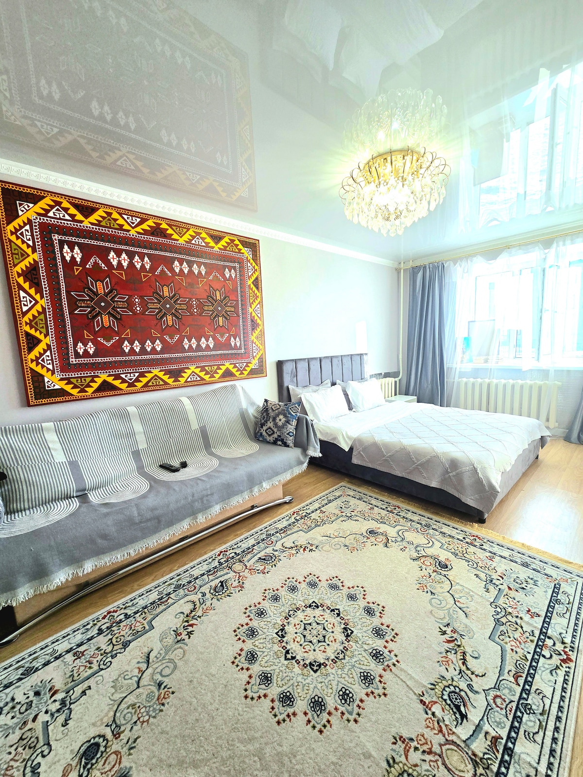 Welcome to the A-Apartments' Nexpo City! Everything is just steps away: EXPO, Mega Silk Way, Hilton, National Bank, Nazarbayev University, IT University, Invictus Fitness, AIFC, Central Mosque, and much more. Inside, you'll find: - 4 sleeping spots (a double bed and a sofa), - all the necessary appliances, dishes, towels, and bed linens, - and fast Wi-Fi. Everything for your comfort! Oh, and no smoking — let’s keep the air fresh together!