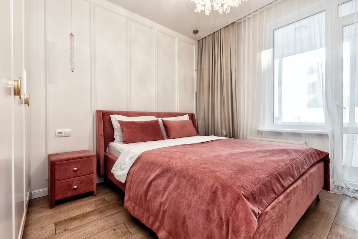 Полноценная двухкомнатная квартира. Все комнаты отдельные. Зал, спальня, кухня, ванная, туалет раздельнык. Бесконтактное заселение 24/7. Смарт-замок. 5 минут от аэропорта. Тихий, спокойный район, чтобы выспаться. Очень теплая, тихая, уютная, чистая квартира. Спальня с двуспальной кроватью и детской кроваткой, в гостиной двуспальная кровать с раскладным диваном, смарт тв, книгами. В кухне можете приготовить себе что-нибудь. Выйти на балкон. Одноразовые принадлежности, фен.