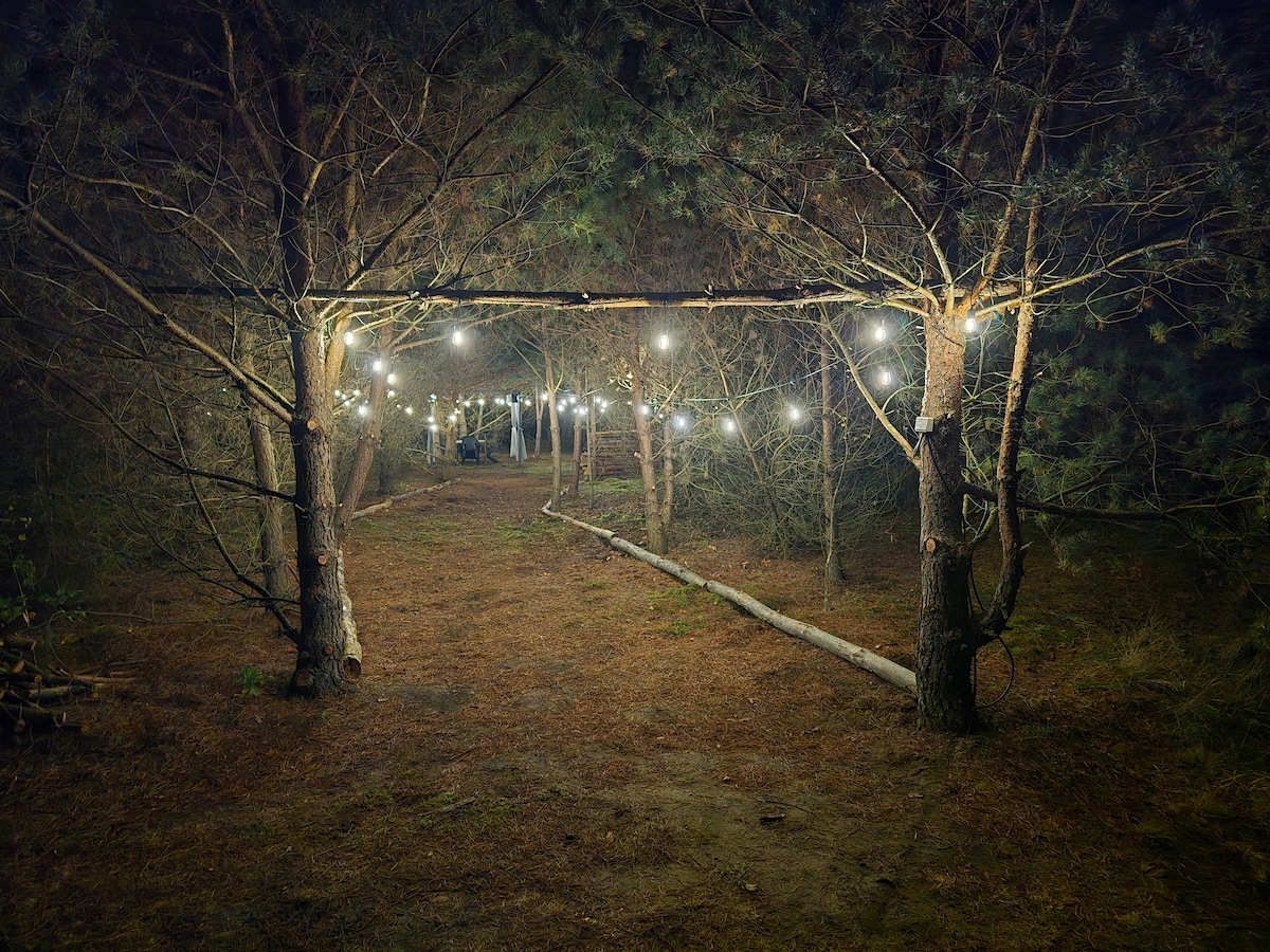 Spokojne miejsce w środku lasu parku krajobrazowego. Najpiękniejsze lasy polski. Taras z leżakami działka 3000 m z drzewami — laskiem nieogrodzona (nic nie zatrzyma psa czy dziecka). Otwarta góra, rozdzielane płótnem dwa pomieszczenia Szybki internet satelitarny (Starlink). Miejsce na wyjątkowe ogniska - dostępne drewno. Wyposażona kuchnia i łazienka