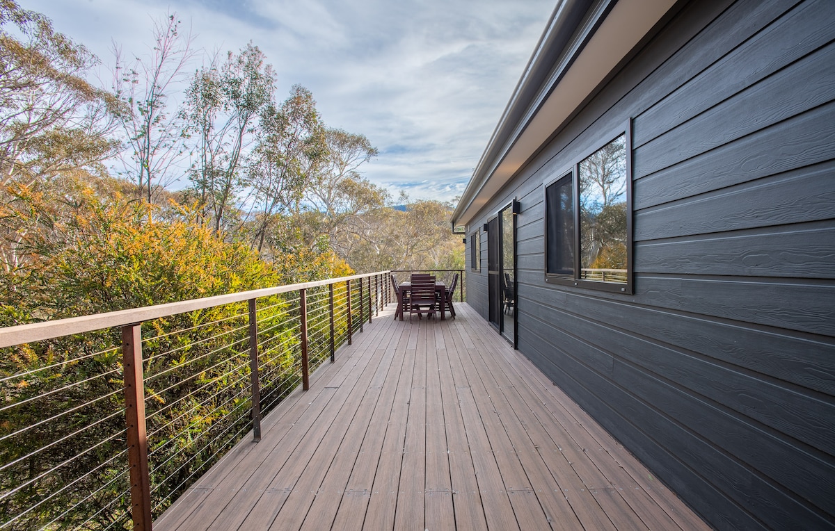 Our spacious studio guesthouse in Tyrolean Village is only 7kms south of Jindabyne & 30 minutes from the ski fields. It has amazing views, off street parking, a gorgeous bathroom and good storage. It has a queen bed, large TV with streaming services, lots of DVDs, books and free wifi. All linen is supplied. It is only a short walk to the lake and stunning bush- tracks. Also on the site is a Swedish Cedar Sauna available to RENT to soothe those muscles after a hard day of exercise.