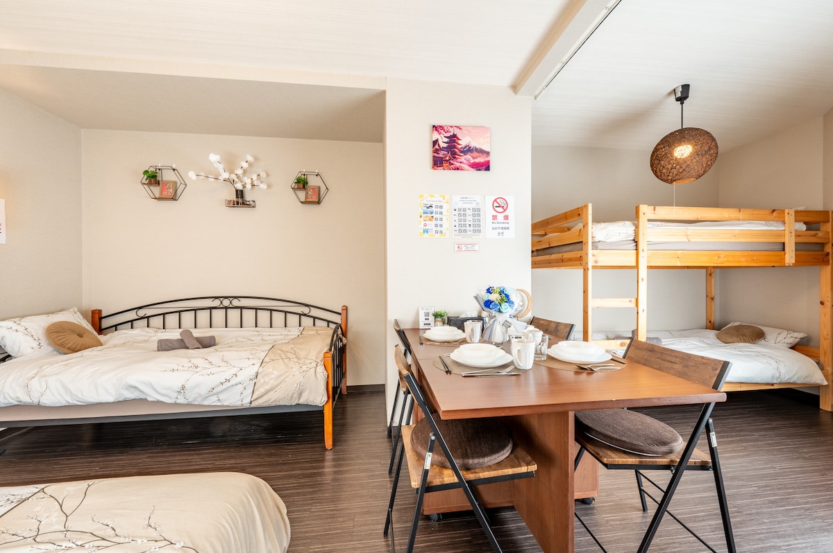 民宿,不等于廉价。打破对民宿的传统定位,我们能给予您的更是一份家的温暖,超越五星级酒店的服务! 1. 我们致力打造"吃喝玩乐住行"一站式服务,让您不虚此行。 2. 房屋内的设备、展示品、用品均为5星级标准。 3. 我们的清扫工作由"日本第一"之称的专业清洁公司负责,卫生质量严格把关。 4. 民宿周边有许多"隐家"餐厅,都是当地人有口皆碑,爱不释手的美食。我们可为您推荐及免费预约。所谓"酒香不怕巷子深",在享受高性价比的同时,相信也一定能满足您的味蕾,让您品尝到别具一格的、舌尖上的"大阪"。 坐落于大阪市中心(城东区),建立于明治42年(1909年)。第二次世界大战时,在空袭中遗留下来的为数不多的独立独户。于2015年由日本知名设计师设计并装潢,占地面积150平米,闹中取静。房屋外观优雅大气,内饰装潢及设施均采用现代化设备。历史文化与现代时尚的两两结合,无论是文化体验,还是宽敞舒适,都是大阪市内屈指可数的高级和风旅荘。相信这里一定会是您的不二选择! 我们在设计上追求人性化,整套房子有两处卫生间并且与洗漱区,大浴场实现三室分离,确保多人入住时,有独立空间,干净卫生的环境。