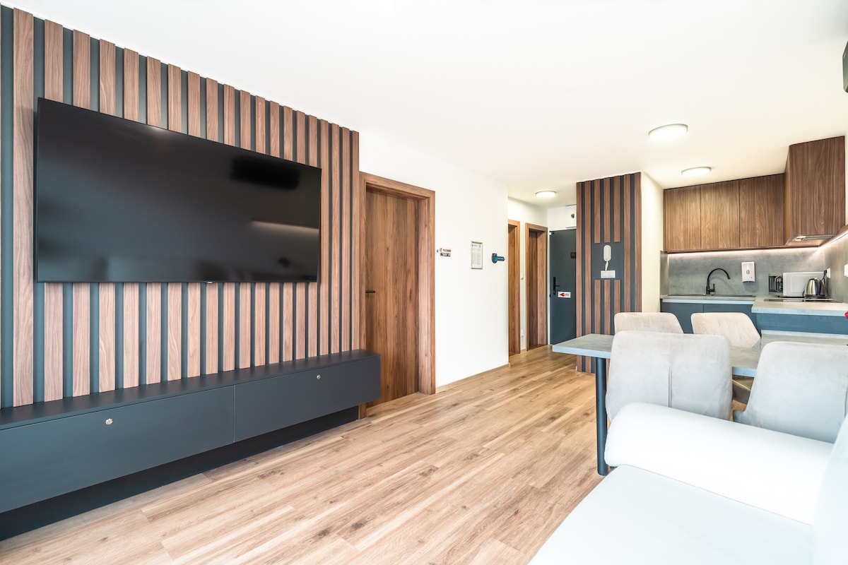 Užite si pobyt v novom, štýlovo zariadenom apartmáne blízko k centru mesta. Apartmán je v tichej lokalite, s výhľadom na zeleň. Apartmán je plne vybavený vrátanie práčky, a umývačky riadu. Nechýba ani plne vybavená kuchyňa. Súčasťou apartmánu je terasa, kde si môžete v pokoji vychutnať kávu, či raňajky Rezerváciou apartmánu máte zabezpečené bezplatné súkromné parkovanie v objekte.