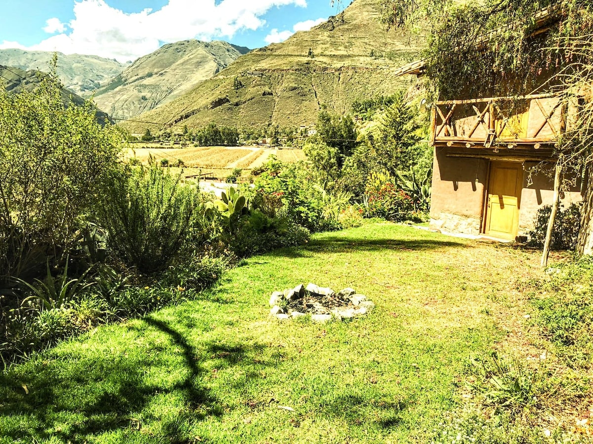 Hermosa casita privada en Lamay, Valle sagrado de los incas. Rodeada de mágicas montañas, árboles, aves y chakra orgánica. Lamay es un típico pueblo andino, muy tranquilo y amigable, a 10 min. del famoso mercado de Pisaq y su resto arqueológico. La casita esta rodeada de jardines y es muy amplia e iluminada, hecha con materiales de la zona. Esto es un proyecto familiar, el bungalow esta dentro de nuestra propiedad y estaremos todos felices de apoyarte en lo que necesites.
