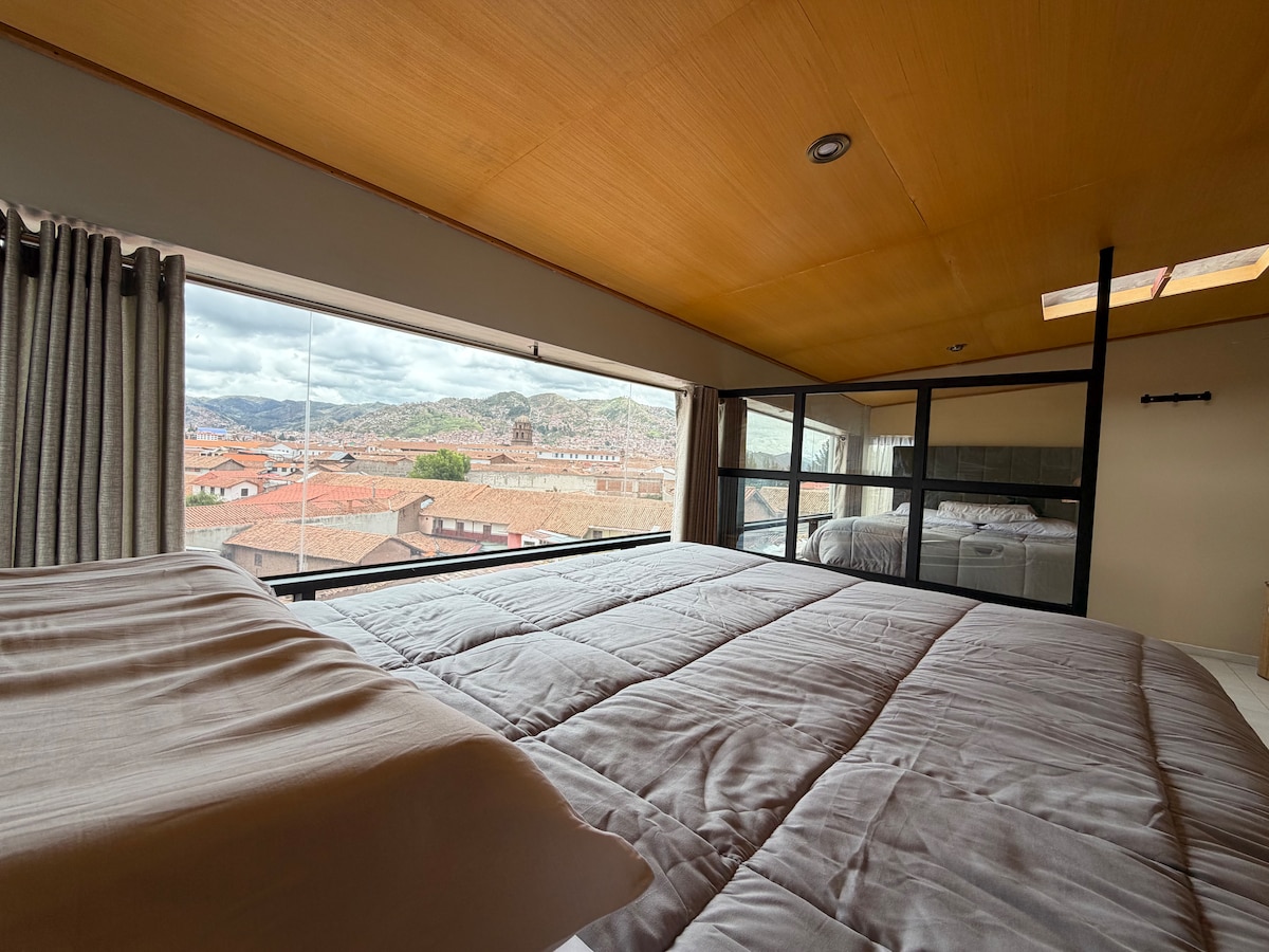 Hermoso departamento de estreno super acogedor con acabados de primera con detalles, excelente vista a la ciudad desde los diferentes ambientes del departamento, buena iluminación, ideal para una pareja o a lo mucho para tres personas consta de una habitación principal y otra pequeña, una sala, comedor, una cocina y lavandería totalmente equipada ubicada en zona céntrica y segura a 5 minutos en taxi de la Plaza de Armas de Cusco, a dos cuadras de la estación de tren de Wanchaq.