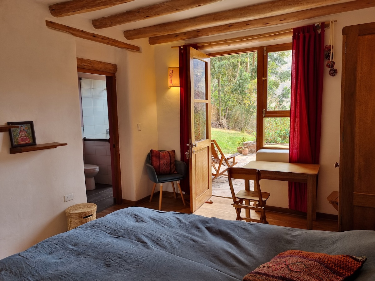 Beautyful private cottage in Lamay, Sacred Valley. Surrounded by magical mountains, trees, birds and organic agriculture. Lamay is a typical local village from the Andes, very quiet and friendly, and its 10 minutes from the famous Pisaq market and archeological site. The bungalow is in side of our property, this is a family project and we´ll be all glad to help. We also organize activities around Lamay and can help you with other tours and activities in Cusco and the Sacred Valley.
