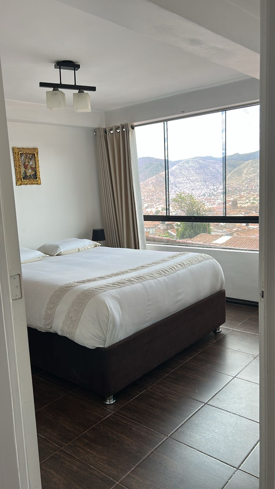 Alquilo departamento de estreno muy acogedor de un área de 85 M2 construcción nueva y decoración confortable y alegre con excelente iluminación y vista a la ciudad de Cusco, ubicación céntrica a 5 min. de la plaza de Armas de Cusco en taxi, cerca a bancos, restaurantes, centros comerciales. Zona muy tranquila y segura para transitar. Le ofrecemos servicio de orientación turística. Estoy segura de que tendrá una estancia muy placentera. , etc.