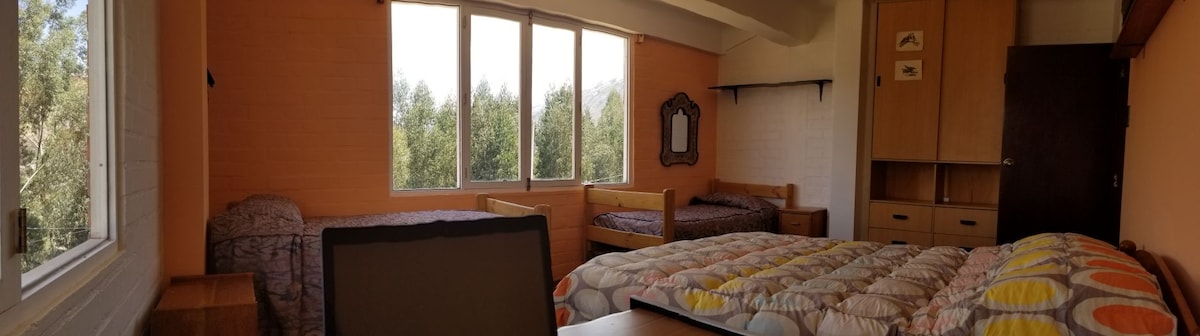 Hermosa y acogedora casa en el valle sagrado, en la quebrada de Lamay, rodeada de montañas y hermosos paisajes . A pocos kilómetros de los pueblos arqueológicos de Pisac y Urubamba, de fácil acceso. Perfecto para familias con hijos y grupos grandes. Una hectárea con huerto orgánico y pozas de aguas medicinales y hot tub. Nuestra casa es un refugio ideal para quienes quieran desconectarse de la ciudad y conocer las maravillas arqueológicas del Valle Sagrado de los Incas.