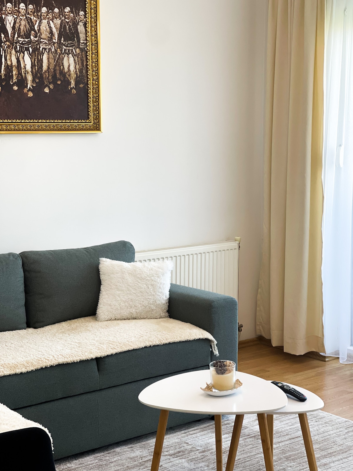 Wake up in our bright, stylish apartment located right in the heart of Pristina. From the moment you step inside you will feel commodity in a peacefully place. You’ll find a great variety of restaurants, cafes, and shops at your doorstep. Make your trip unforgettable!
