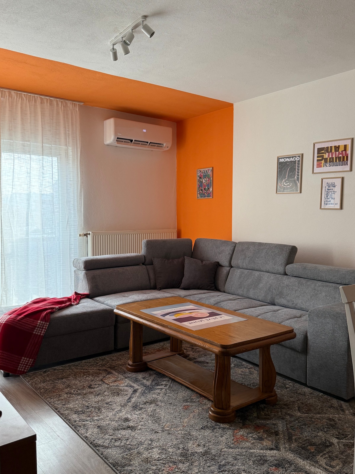 Decorated by the owners and inspired by objects and furniture, in this case, the owners decided to reuse their memories of growing up, the local 90s lifestyle and turned the apartment into a modern, designer-made space. The comfy setting, the lights, the colors, the furniture, and the objects will make your stay unforgettable. Moreover, one side of the apartment is filled with windows providing a great wide view of the city square. What's new: Netflix & air conditioner.