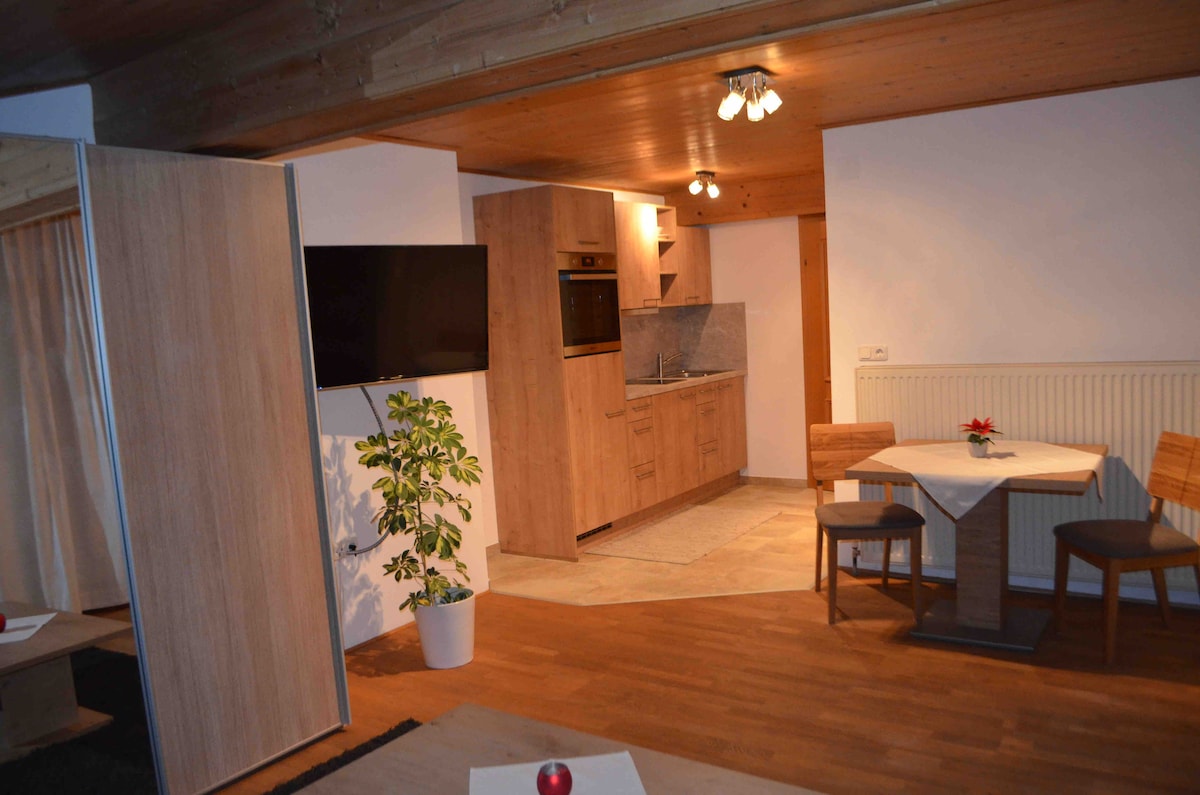 Willkommen in Ihrem gemütlichen und wunderschönen 2-Zimmer-Apartment im Landhaus Almandin in Schwendt! Idyllisch gelegen auf 670 Meter Höhe in bevorzugter, ruhiger und sonniger Waldrandlage am Fuße des Wilden Kaisers mitten im Tiroler Kaiserwinkl (Bezirk Kitzbühel), nahe der deutschen Grenze. Mit 60 m² bietet das Apartment Platz für bis zu 4 Personen. Ein perfekter Rückzugsort für Naturliebhaber, Aktivurlauber und Erholungssuchende.