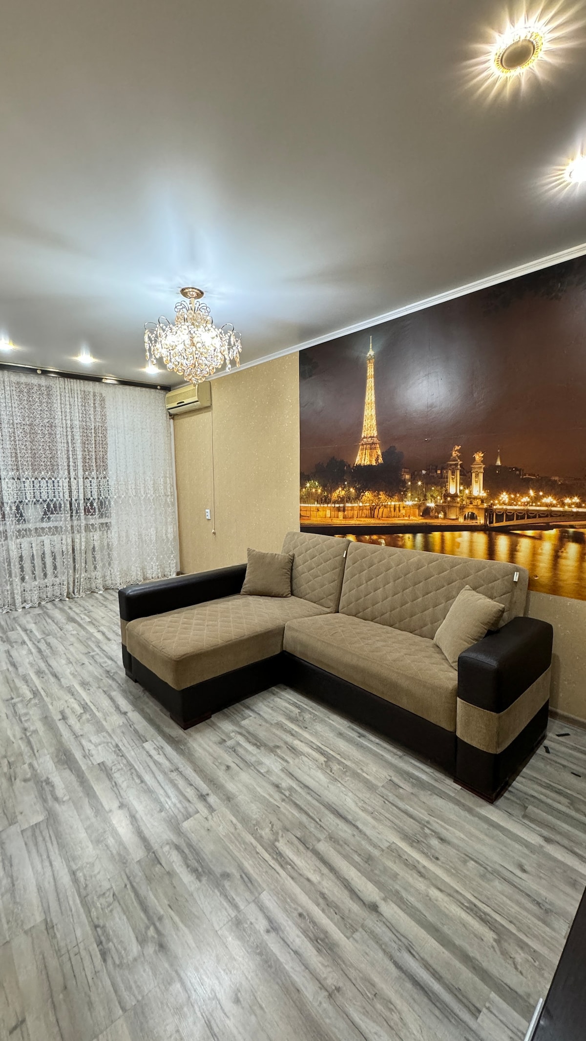 About this property Comfortable Living Space: Soviet Modern Apartments in the Center of City offers a one-bedroom apartment with a living room and a balcony. The apartment includes a washing machine, kitchen, TV, and electric kettle. Essential Facilities: Guests enjoy free WiFi and free on-site parking. The reception staff speak English and Russian, ensuring smooth communication.