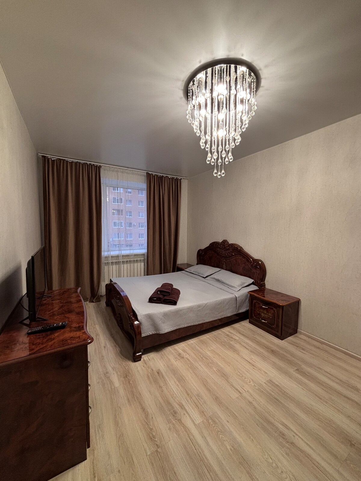 Квартира расположена рядом с центром города на 8 этаже 9ти этажного дома. Всё необходимое в шаговой доступности: магазины, кафе, рестораны, больница, фитнес центр, аквапарк. Автобусные остановки во все направления города. Есть все для комфортного проживания- две двуспальные кровати, лоджия, удобные спальные места, стиральная машинка автомат, ЖК телевизор, кабельное ТВ, микроволновая печь, скоростной wi-fi, холодильник, чайник, посуда, спальное белье, полотенца. Работаем с депозитом(залог)