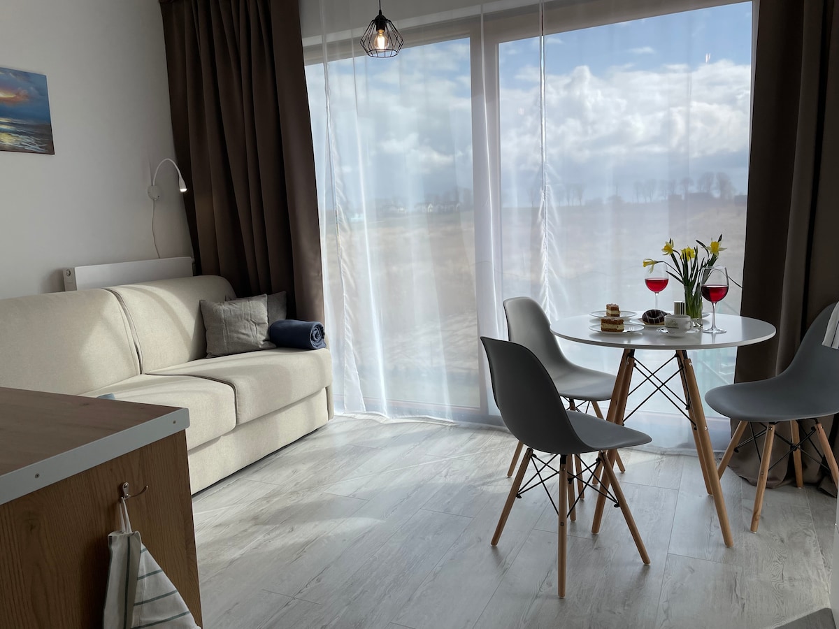 Zapomnij o swoich zmartwieniach dzięki tym przestronnym i napawającym spokój. Całoroczne apartamenty urządzone są w stylu nowoczesnym, przyjaznym dla par podczas romantycznych wyjazdów, jak i dla całych rodzin z dziećmi. Doskonałe wyposażenie sprawi, ze poczujecie się Państwo jak w domu. Apartamenty znajdują się w nowym budownictwie i położone są nad samym morzem. Do dyspozycji Gości jest bezpłatny Internet oraz miejsce parkingowe.